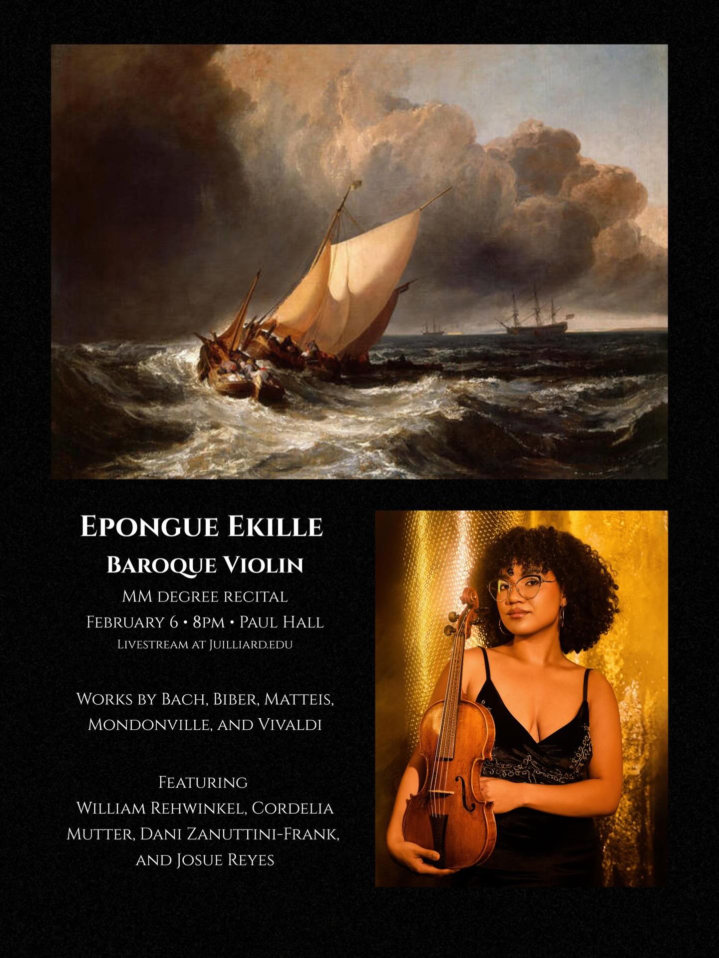 William performs in J415 with Yale Voxtet directed by Stephen Stubbs at the following locations: Friday, February 13, 2026, 7:30PM, Sprague Hall, Yale School of Music. Saturday, February 14, 2026, 4PM, St Ignatius of Antioch Episcopal Church, New York. Public transportation to Sprague Hall: From New Haven Union Station, take Union Station Shuttle to New Haven Green. Walk to 470 College St, New Haven Public transportation to St. Ignatius of Antioch: 1 Subway to 86 st. Walk to 552 West End Ave, New York Wednesday, March 25 2026, 5:30PM: William plays his Senior Recital with friends in Morse Hall, at the Juilliard School (Take 1 to 66 St - Lincoln Center subway station).